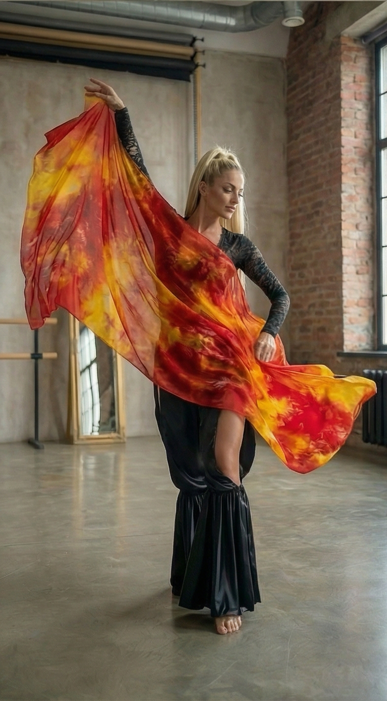 Шелковая вуаль для танца 100% для танцев "Морская пучина"