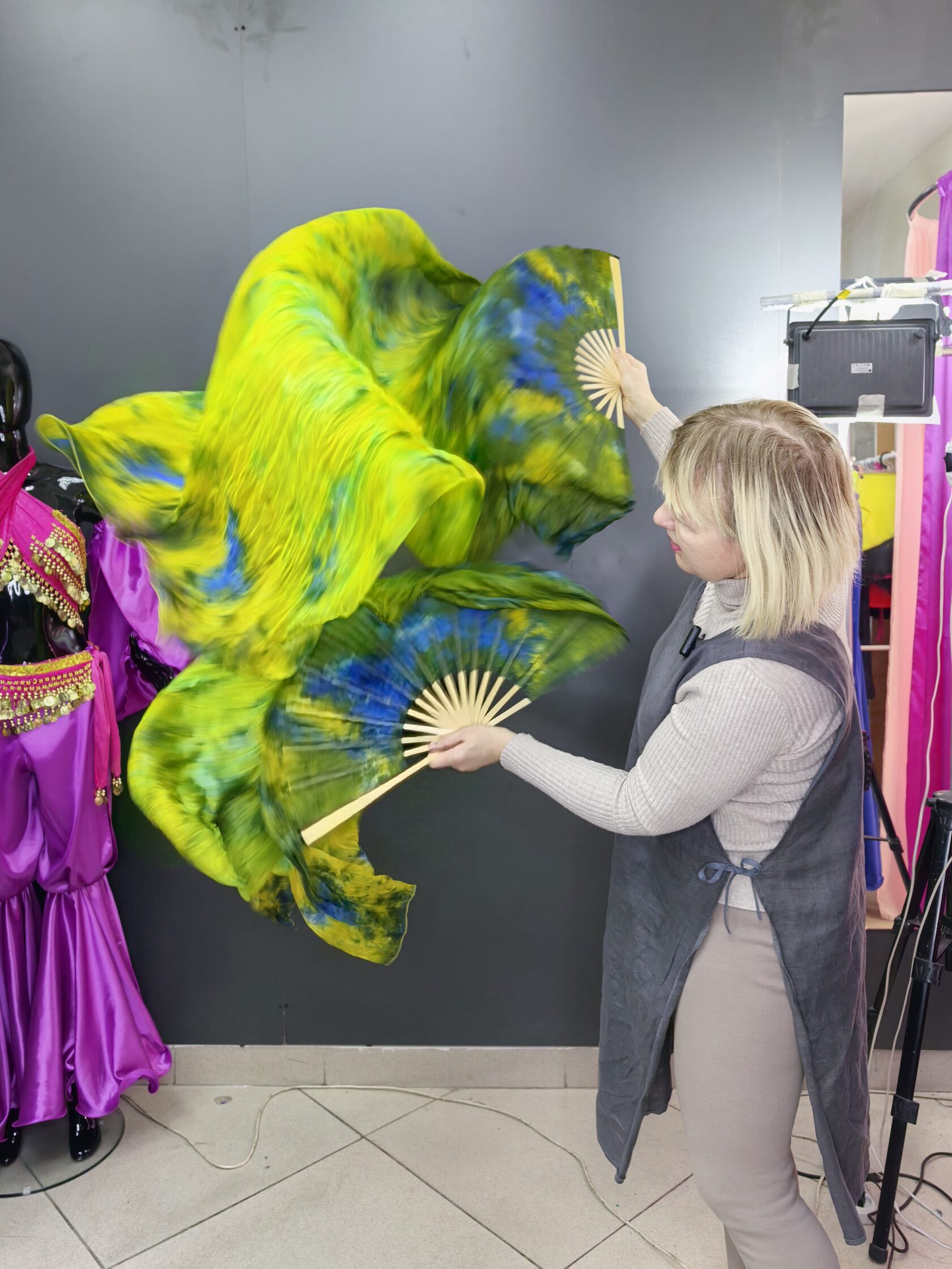 Веер для танца живота, Шелковый веер ручной работы из 100% натуральн шелк