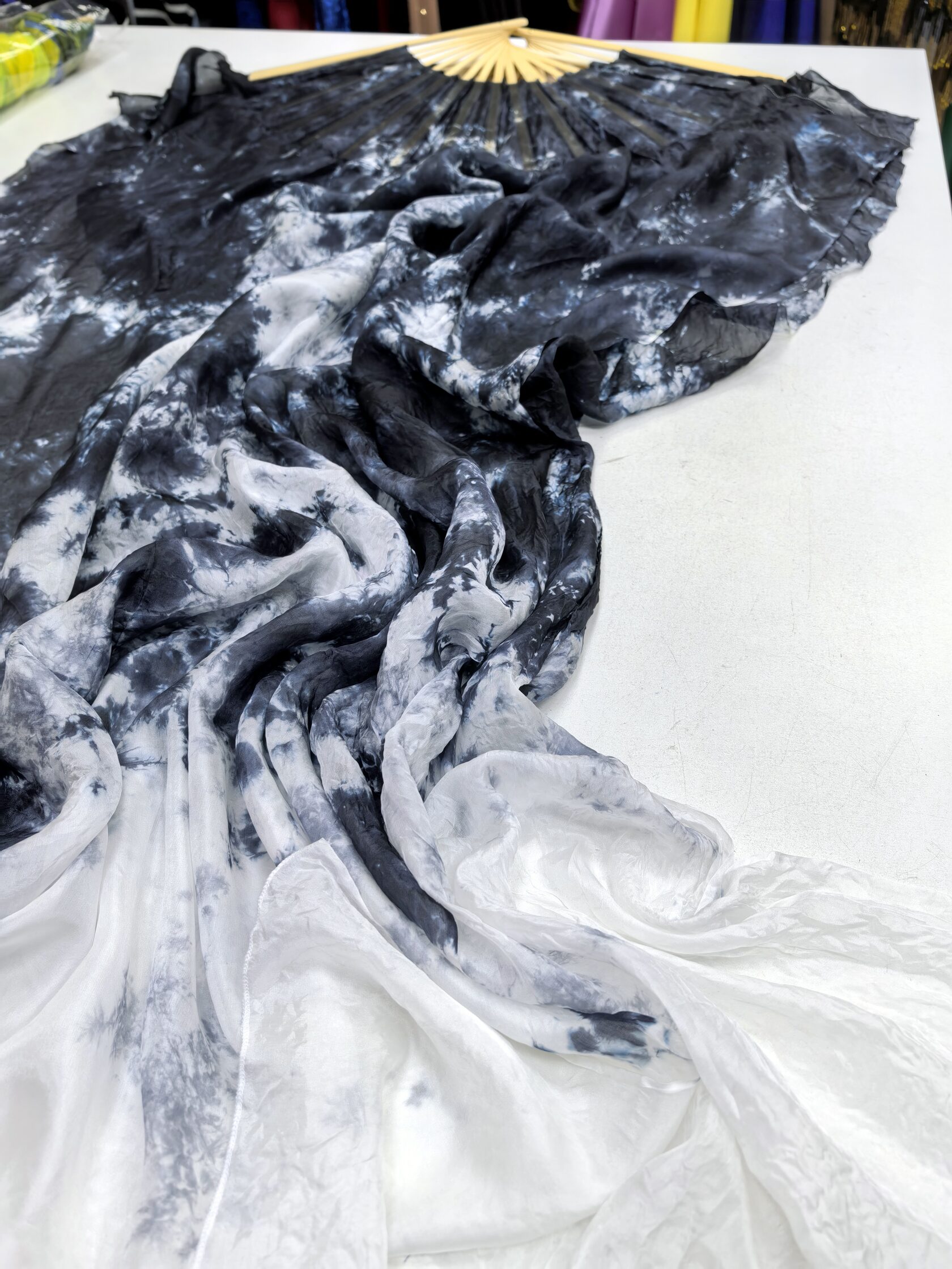 Веера-вейлы выполнены из 100% натурального шелка, что обеспечивает их долговечность и комфорт в использовании. Длина шелка составляет 150 см, что позволяет использовать веера для танцев на различных мероприятиях.