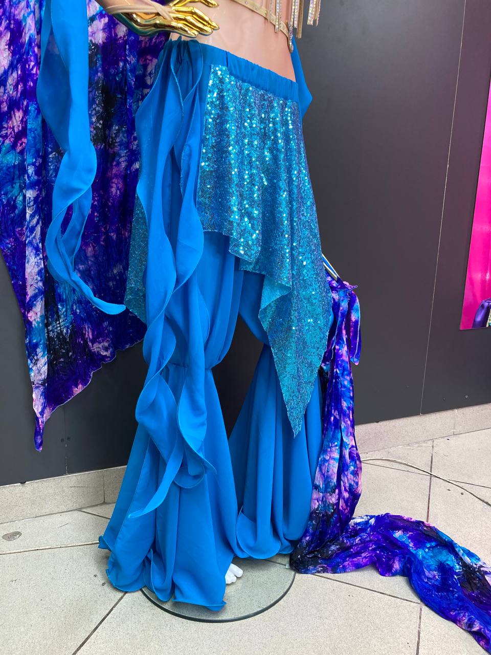 Ощутите магию востока с нашими шароварами «Шахерезада». Элегантные и блестящие, они идеально подчеркивают ваше движение на сцене. Ткань атлас-стрейч непрозрачная, с легким блеском, создающая сказочный эффект. Мы шьем на любой размер, учитывая особенности каждой танцовщицы. Хотите этот образ? Рукава не входят в комплект, но их можно легко заказать для создания костюма. Некоторые варианты могут быть в наличии — уточняйте!