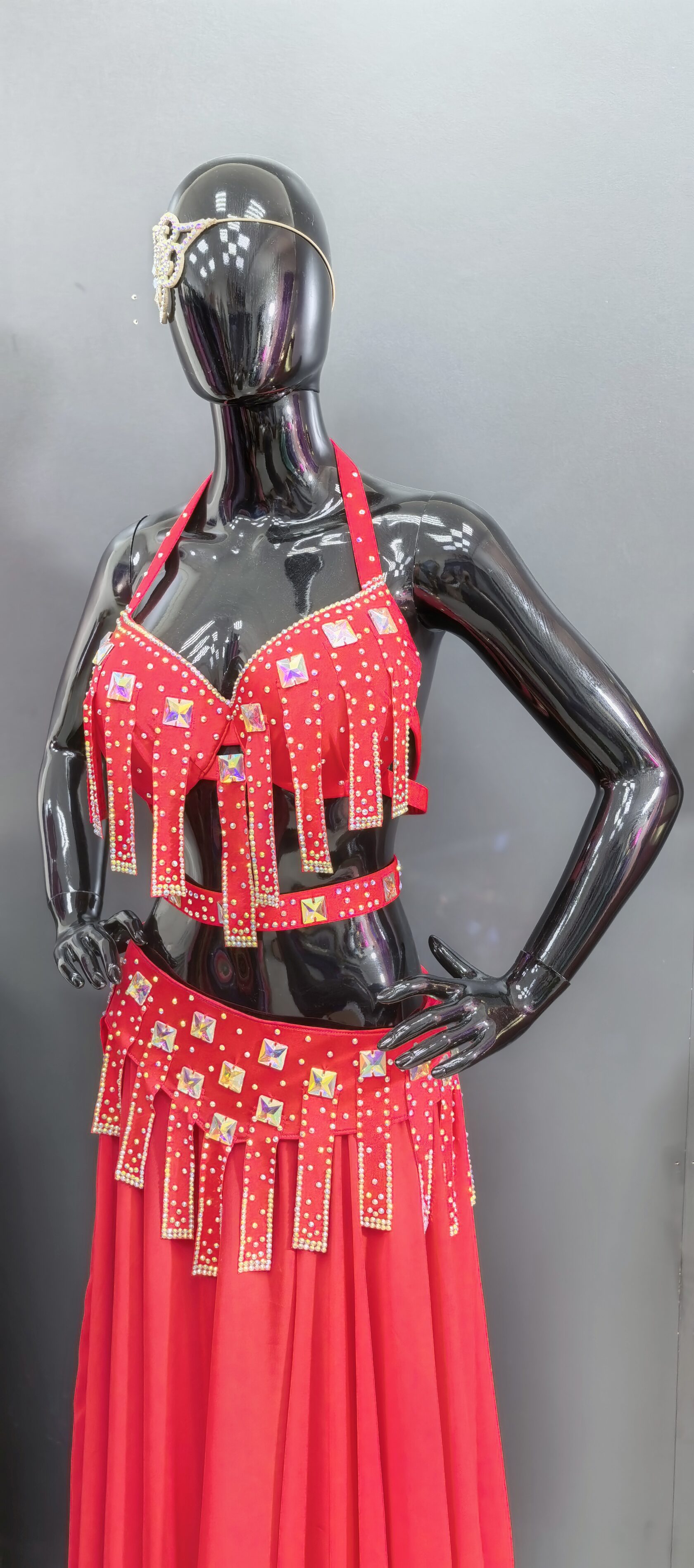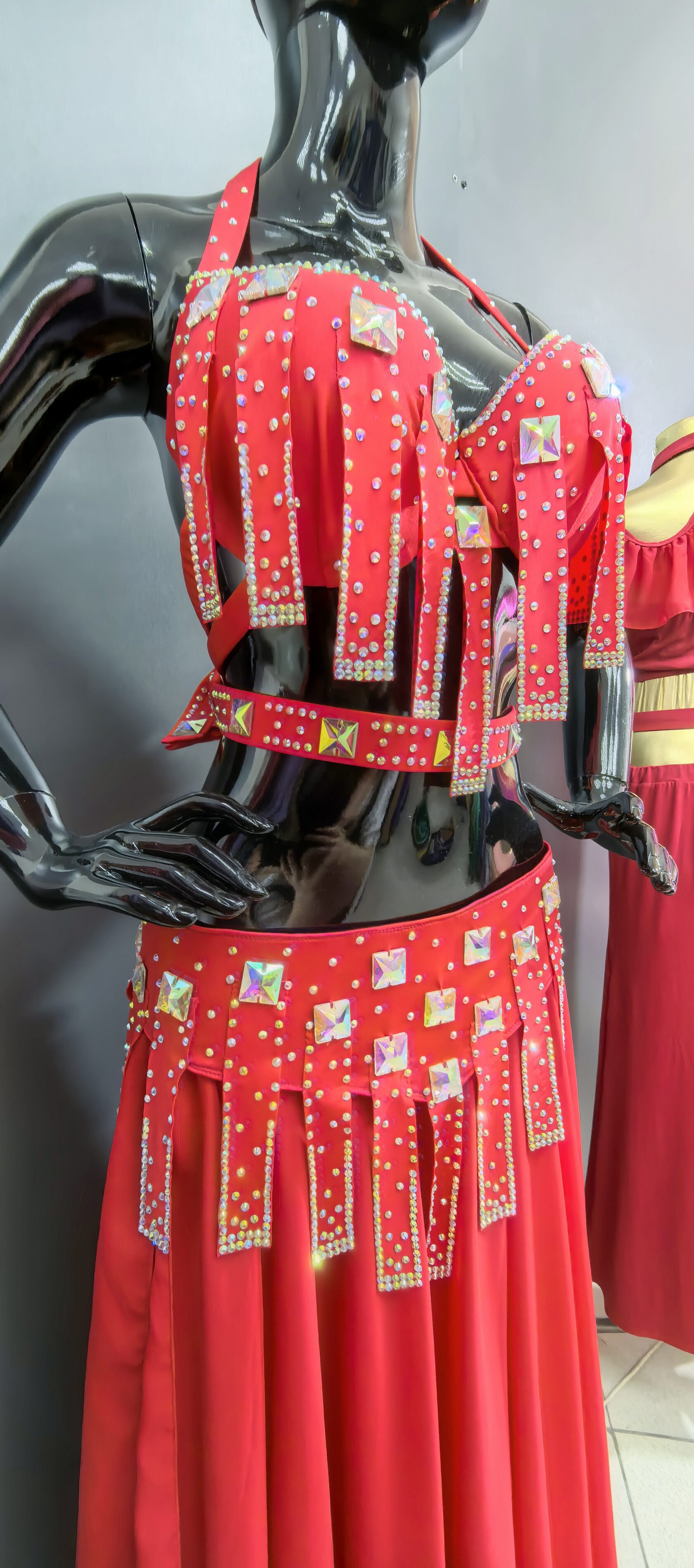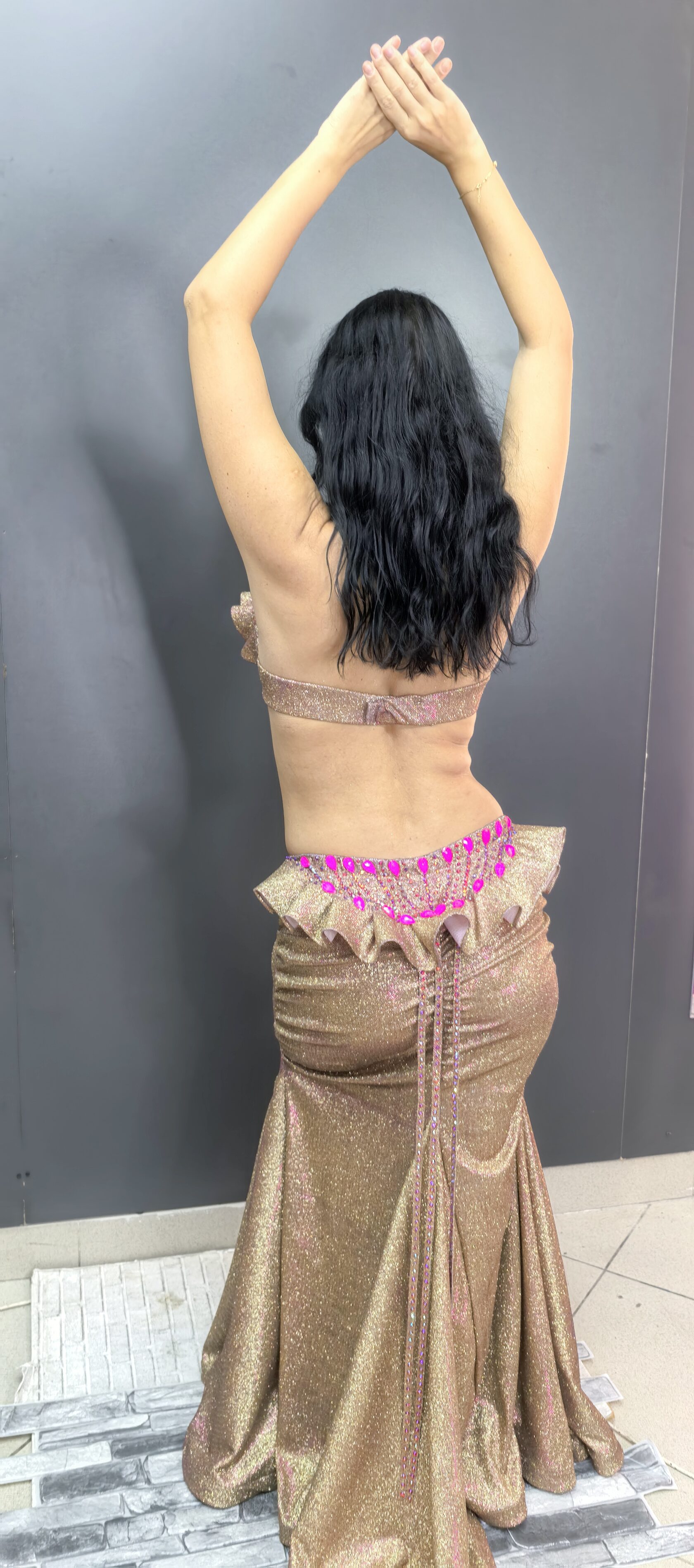 Почувствуйте себя настоящей звездой в нашем блестящем костюме. Яркий блеск пайеток притягивает взгляд, а изящная бахрома подчеркивает каждое ваше движение, добавляя динамики и грации. Перемычки на костюме обеспечивают шик и позволяют быть в тренде, что позволит вам выделиться из толпы. Восточные танцы — это не только искусство, но и мода, и наш костюм полностью соответствует последним тенденциям, сочетающим стиль и комфорт. Пошив на любую фигуру.