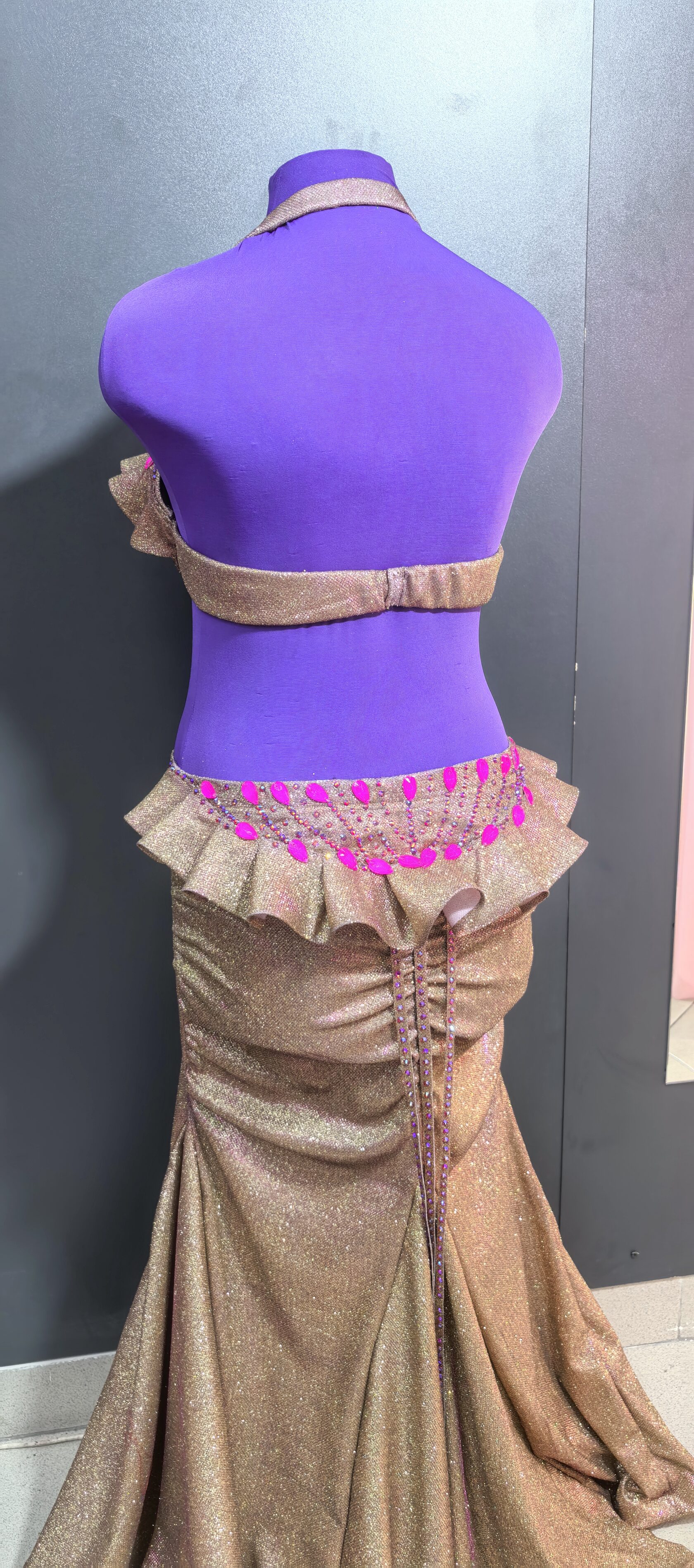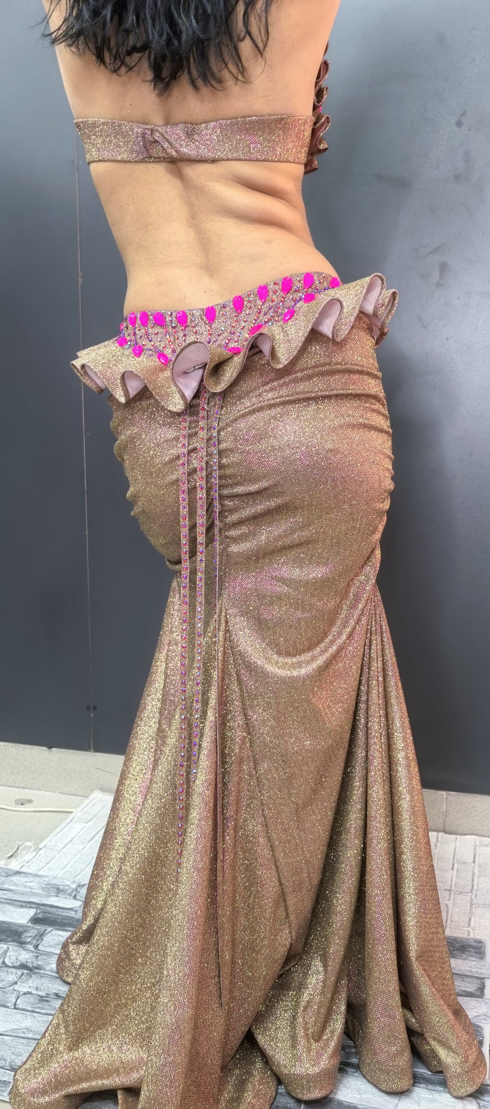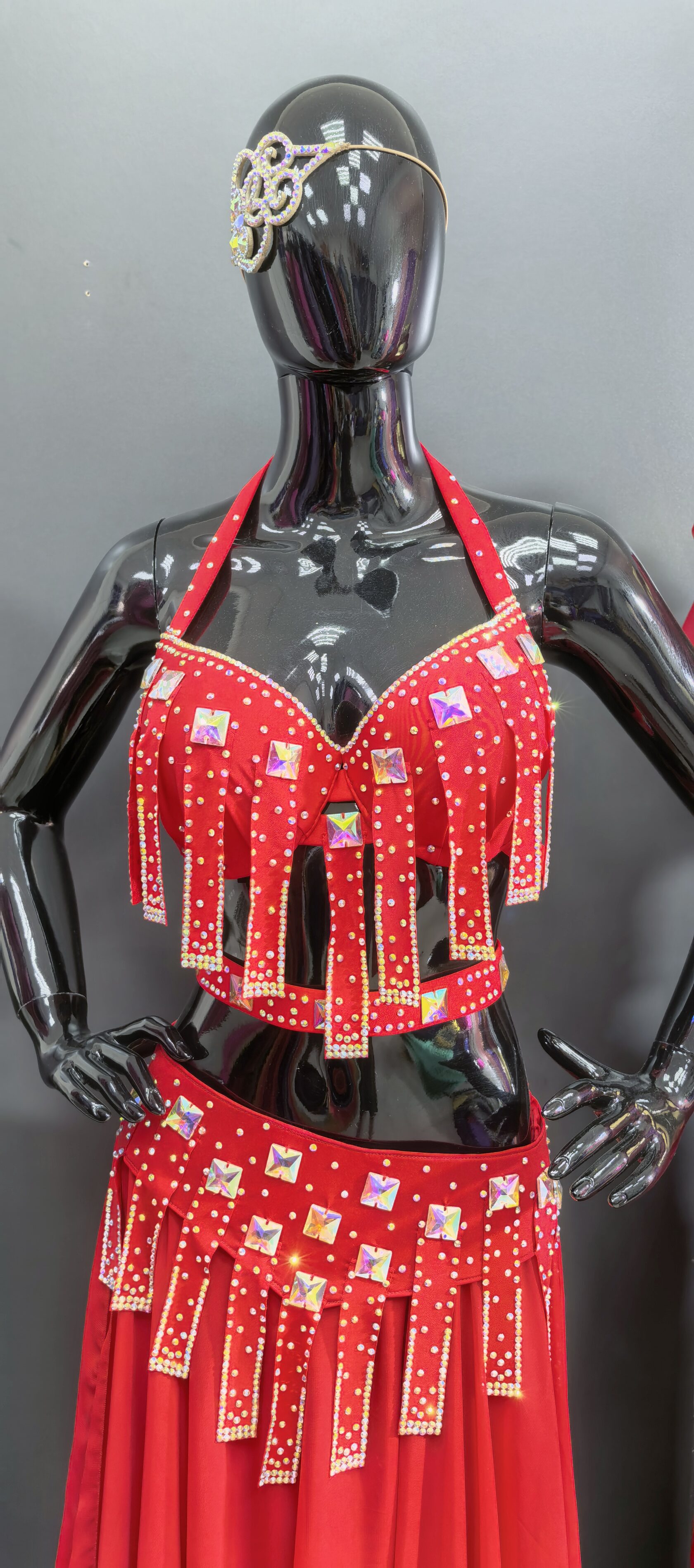 Почувствуйте себя настоящей звездой в нашем блестящем костюме. Яркий блеск пайеток притягивает взгляд, а изящная бахрома подчеркивает каждое ваше движение, добавляя динамики и грации. Перемычки на костюме обеспечивают шик и позволяют быть в тренде, что позволит вам выделиться из толпы. Восточные танцы — это не только искусство, но и мода, и наш костюм полностью соответствует последним тенденциям, сочетающим стиль и комфорт. Пошив на любую фигуру.
