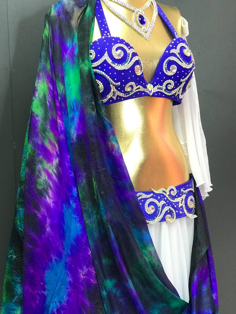 Этот восточный костюм — не просто наряд, это воплощение самой души восточных танцев. Он создан для того, чтобы ваше выступление превратилось в легенду, а каждое движение источало магию и благородство.