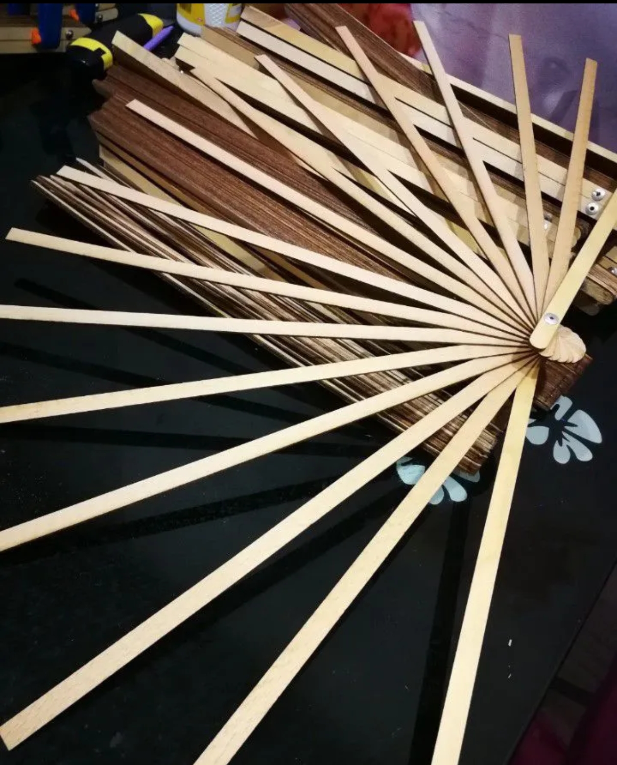 Длина 35см, ширина 1 см, крайние палочки тольше, чем внутренние