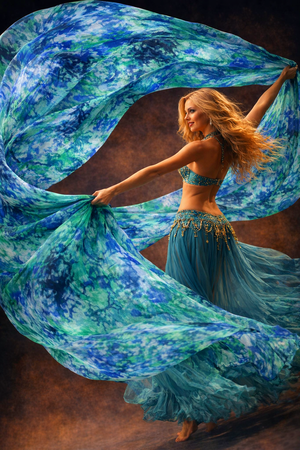 Шелковая вуаль для танца 100% для танцев "Морская пучина"