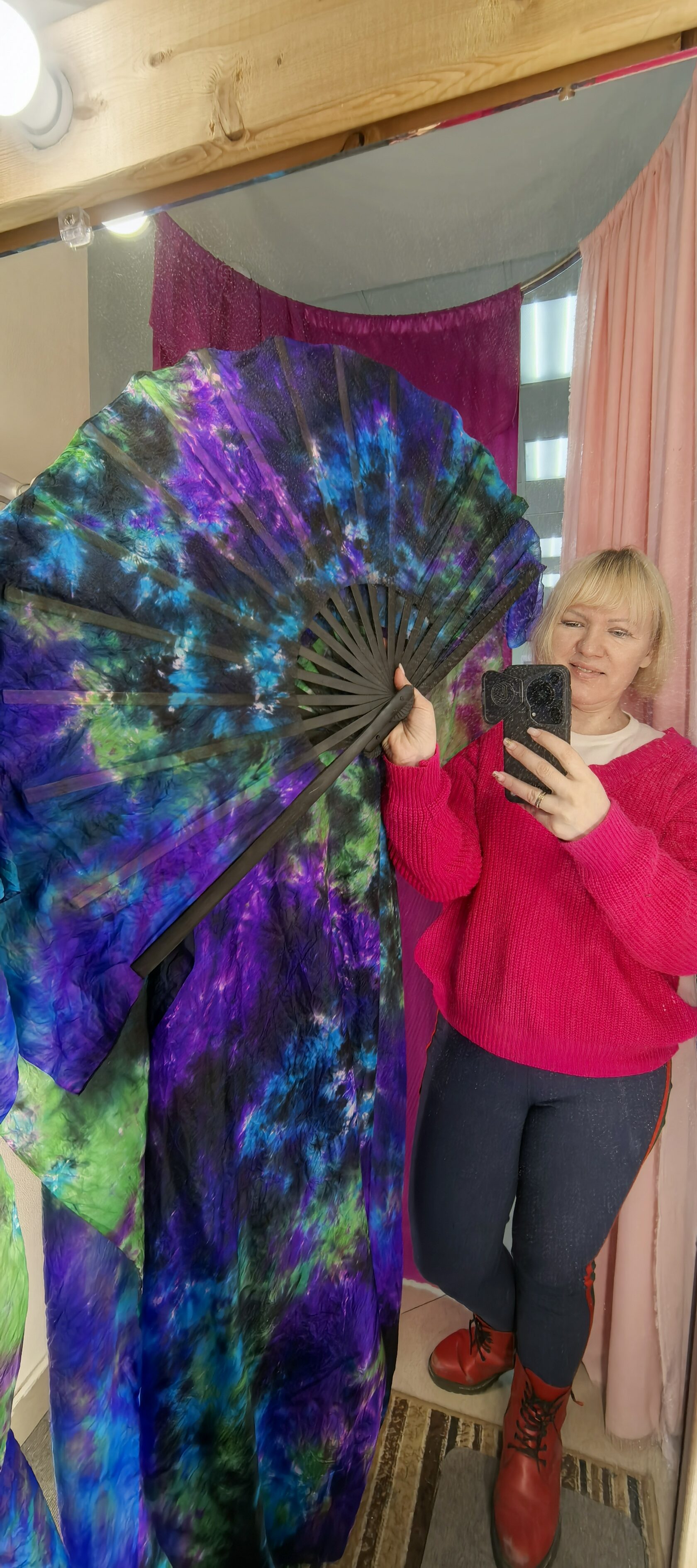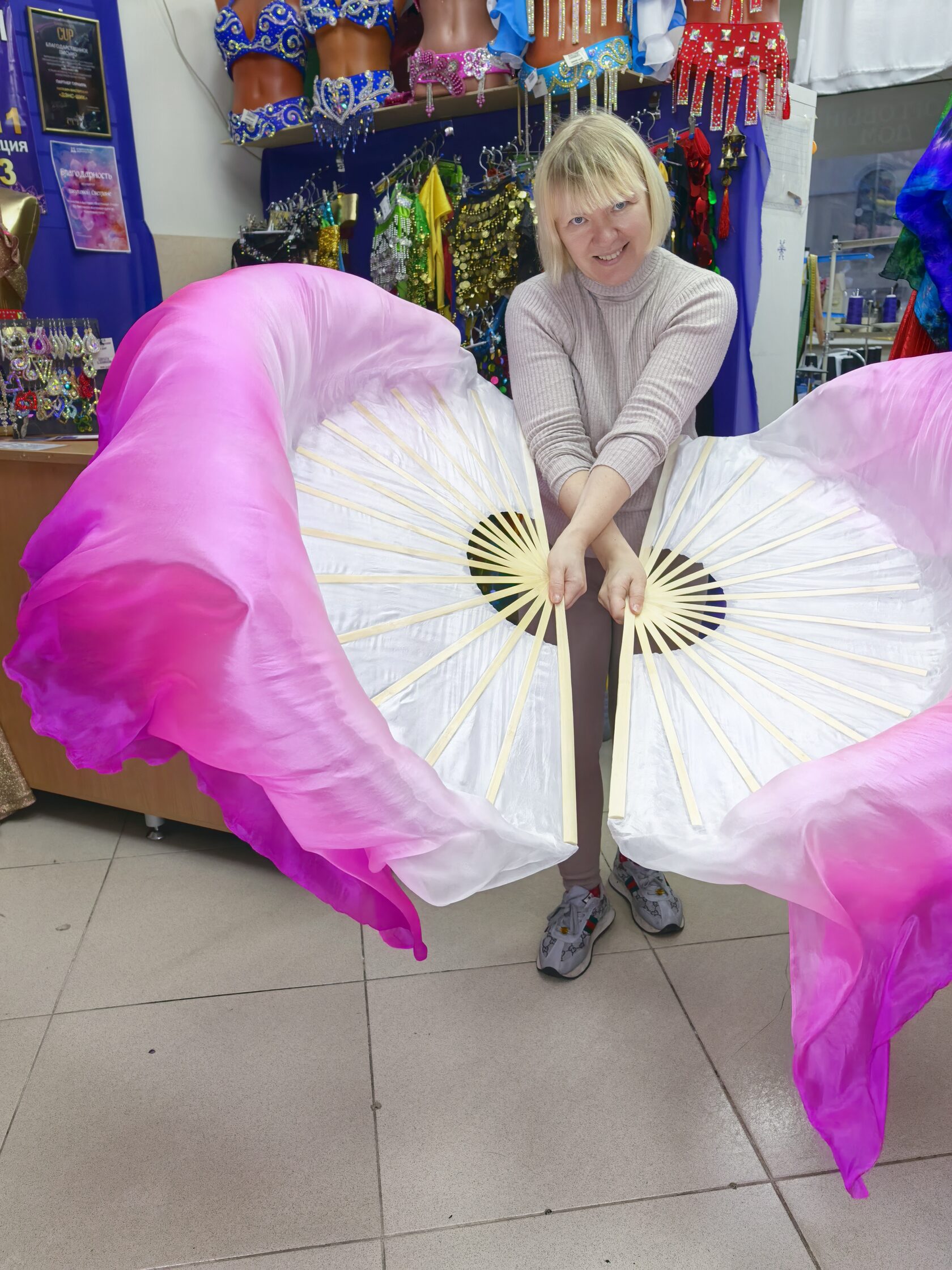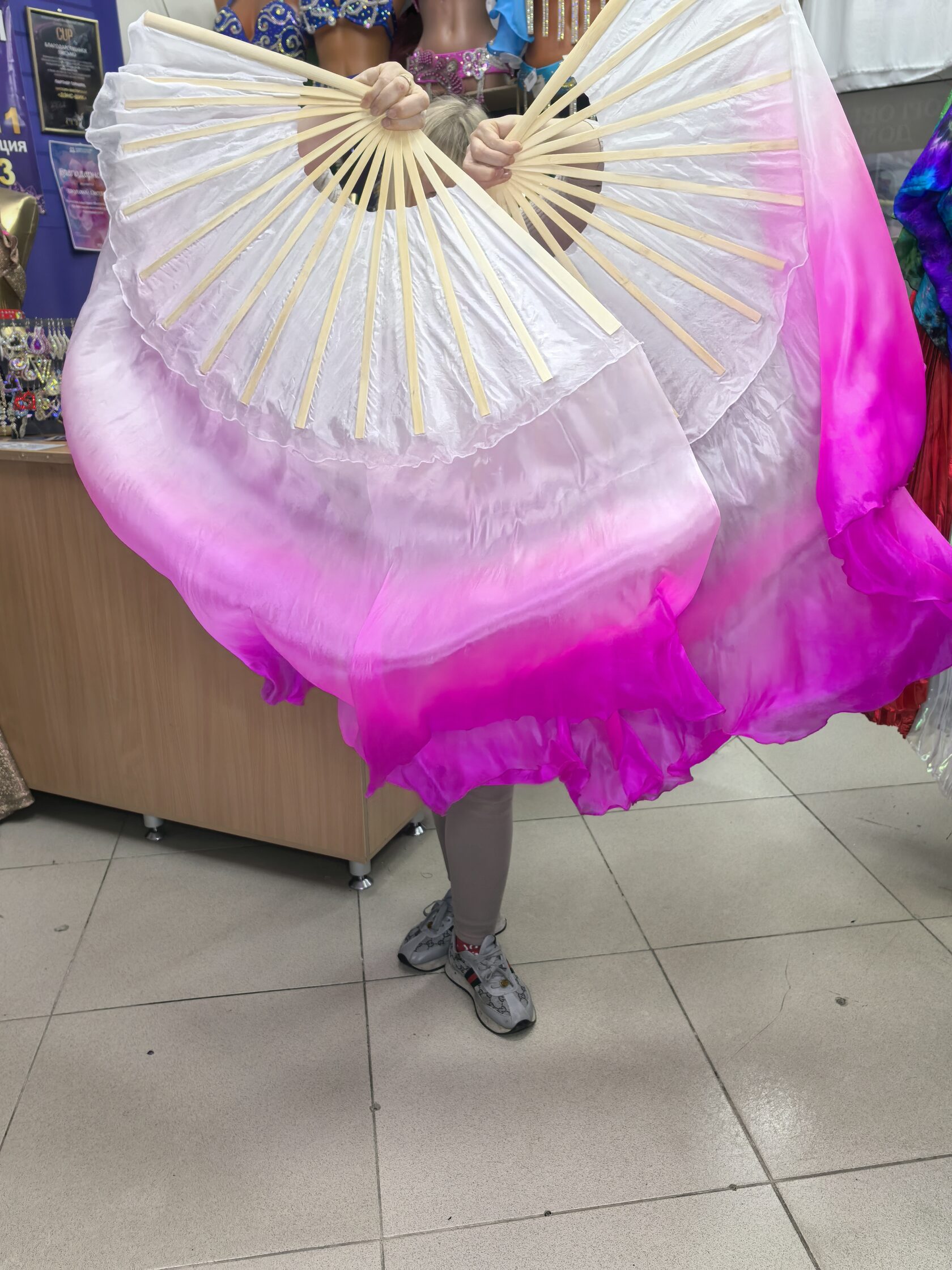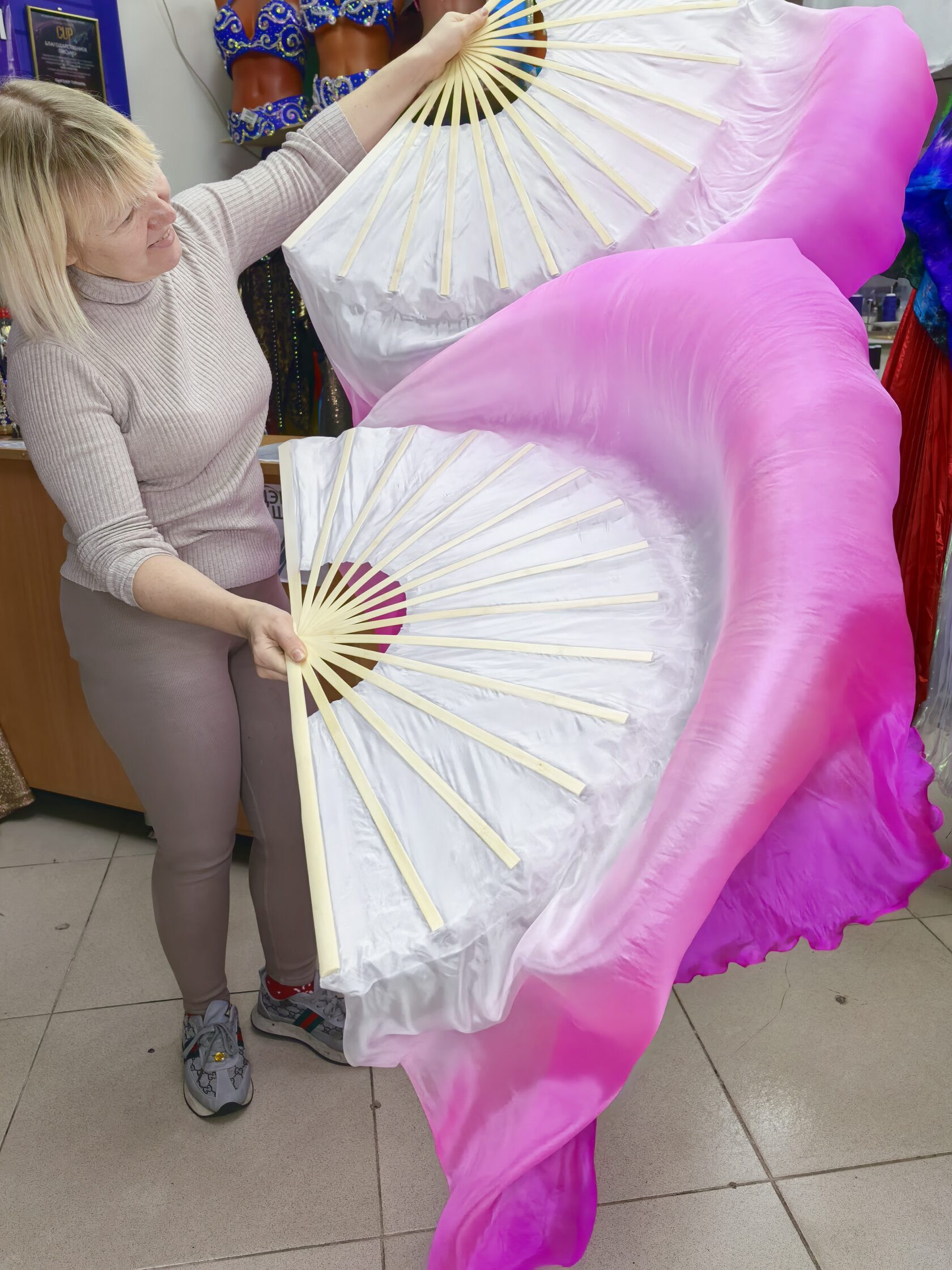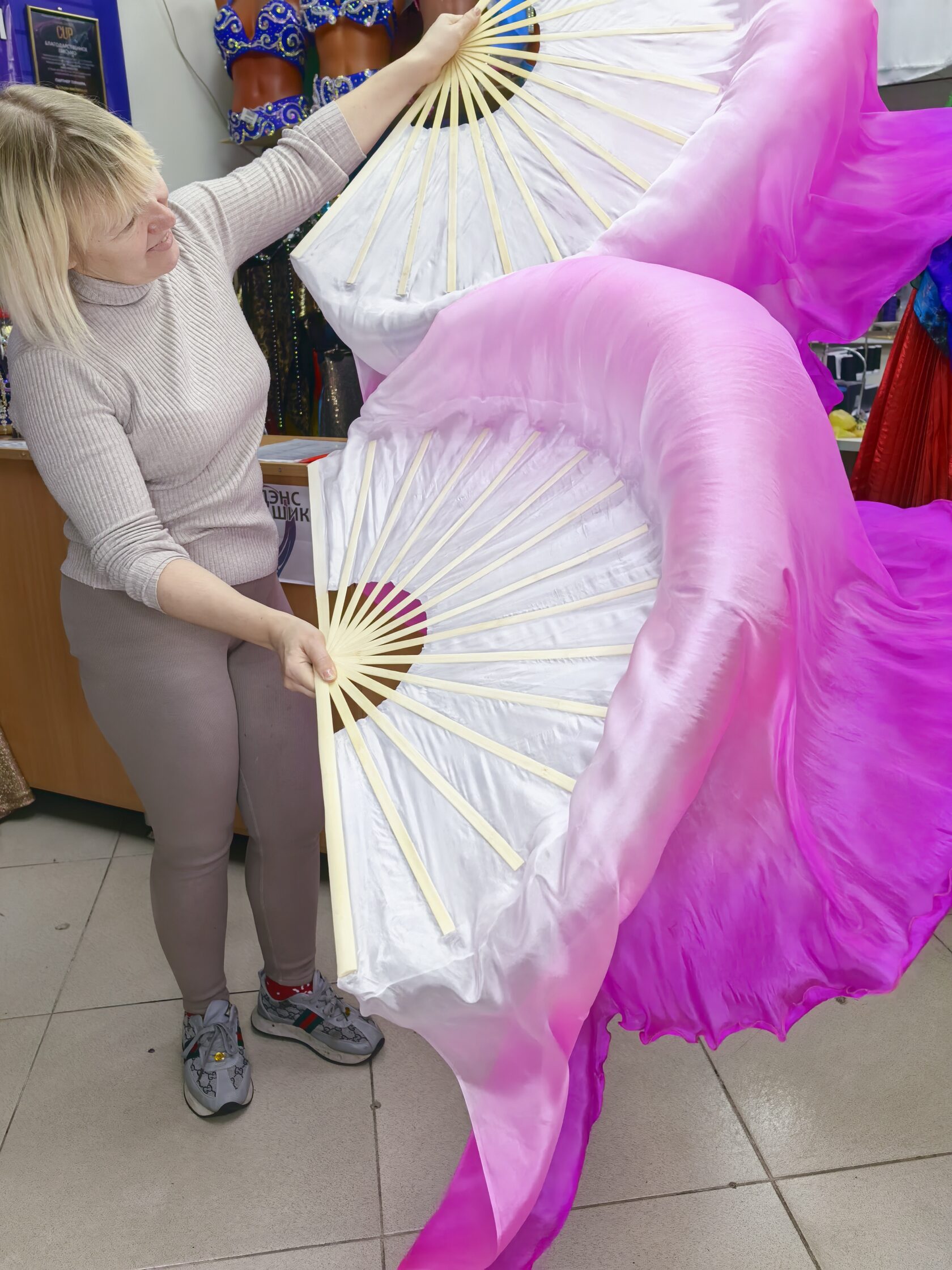 Что такое веер-вейл?Веер-вейл — это атрибут, состоящий из основания - веера и шлейфа из шелка, раскрывается и образует плавные линии и изгибы в воздухе. Этот предмет, как искусство танца, имеет свои корни в восточной культуре. Он изысканно дополняет движения танцовщицы в танце, придавая им легкость, гармонию и аристократичность. Вейлы используются в разных видах танца (диско, фламенко, спортивные танцы, фигурное катание) или как элемент шоу на сцене цирка,